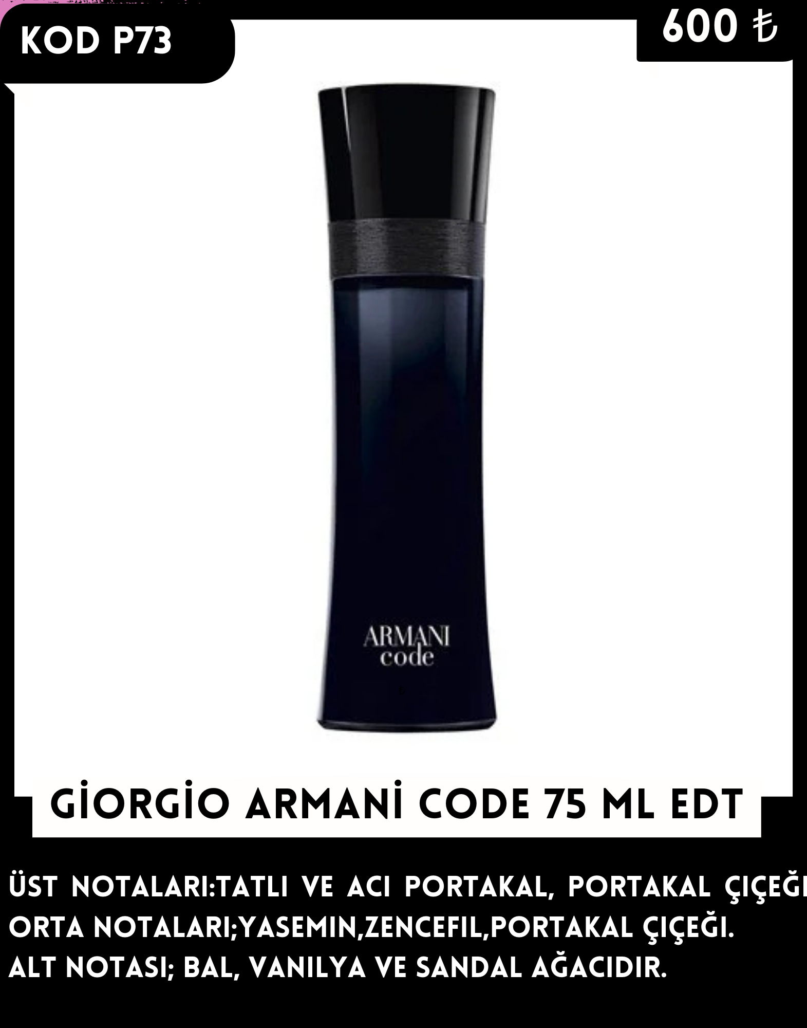 P73 GIORGIO ARMANI CODE 75 ML EDT - 600.00 TL